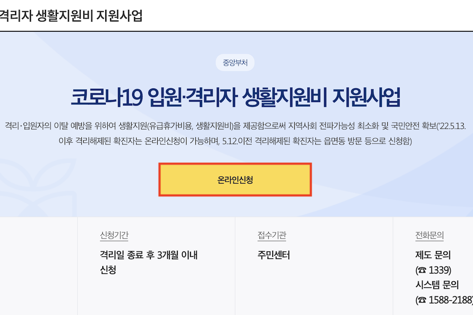 하지만 지원금 신청 시 주의사항이 있습니다. 코로나 격리 지원금은 격리 해재 후 90일 이내에 신청해야 지원금 수령이 가능한데요. 재감염된 분들 또한 첫확진 이후 90일이 지났다면 코로나 확진자 지원금을 다시 신청하여 받을 수 있습니다.